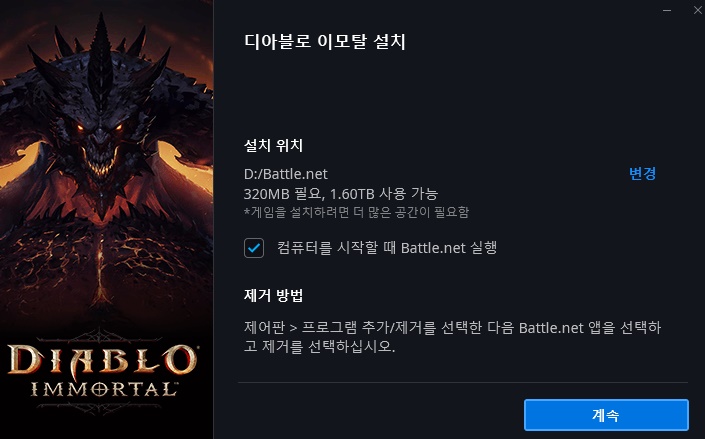다운로드 받으신 디아블로 이모탈.exe 프로그램을 실행하시면 됩니다.